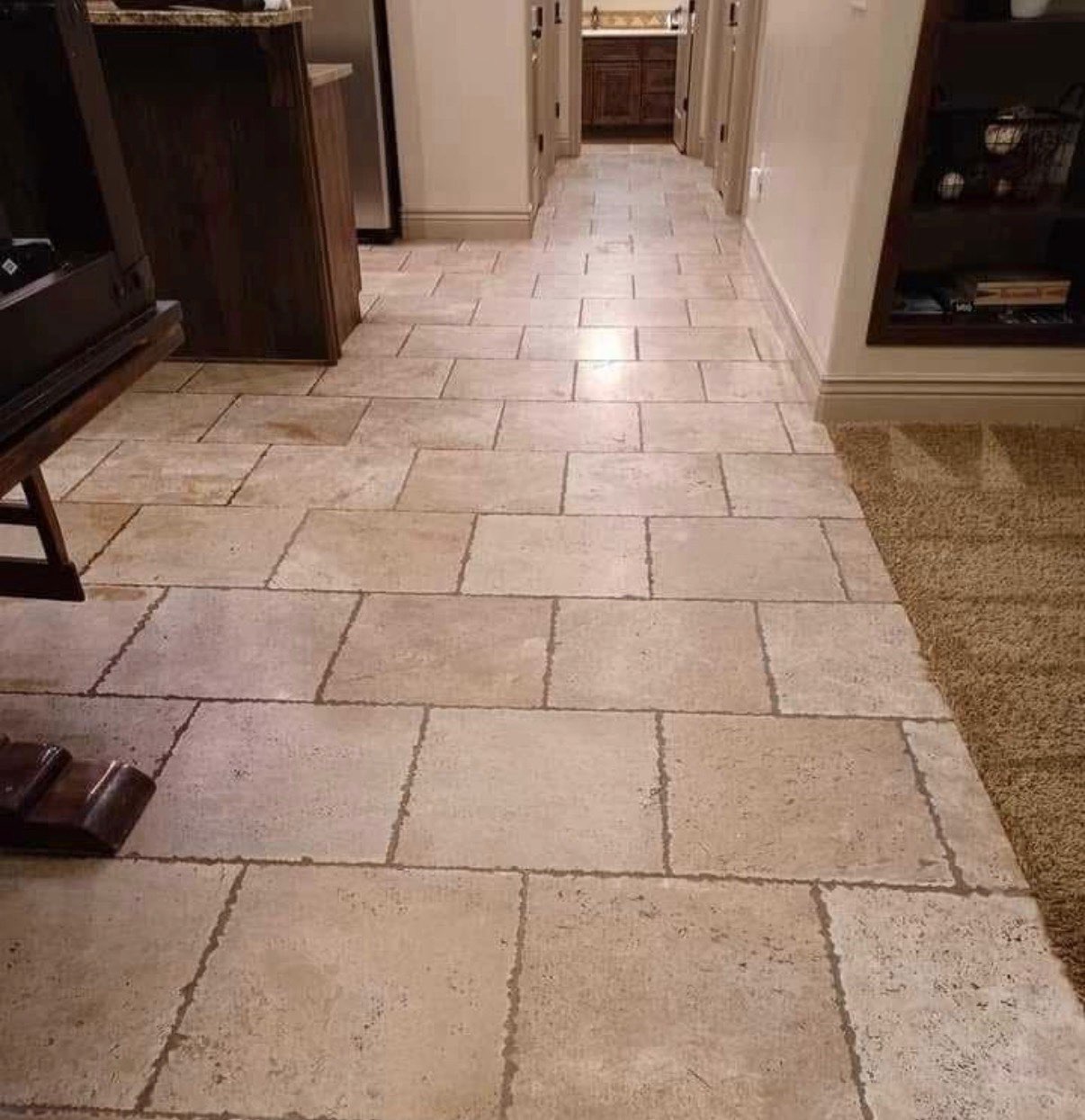 Tile & Grout Cleaning – Kitchen floor grout lines restored to original color.